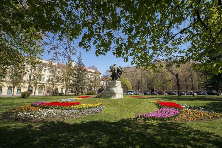 Arriving through Kárász Street, we can admire the musical fountain in Dugonics Square opposite the Main Building of the University of Szeged.